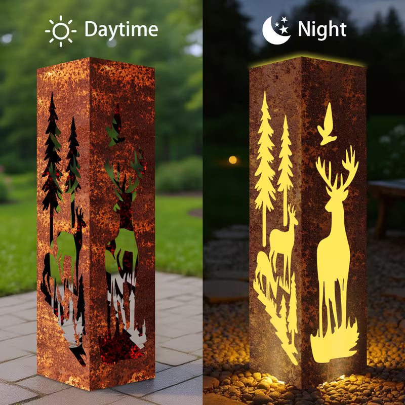 De beelden zijn vervaardigd uit massief ijzer, een materiaal dat jarenlang meegaat zonder zijn charme te verliezen. De stevige voet en het gewicht zorgen voor een stabiele plaatsing, zelfs bij wind. De weerbestendige coating beschermt tegen roest, zodat ze het hele jaar buiten kunnen blijven staan. Dankzij het eenvoudige montageproces heb je ze in enkele minuten stevig geplaatst.
